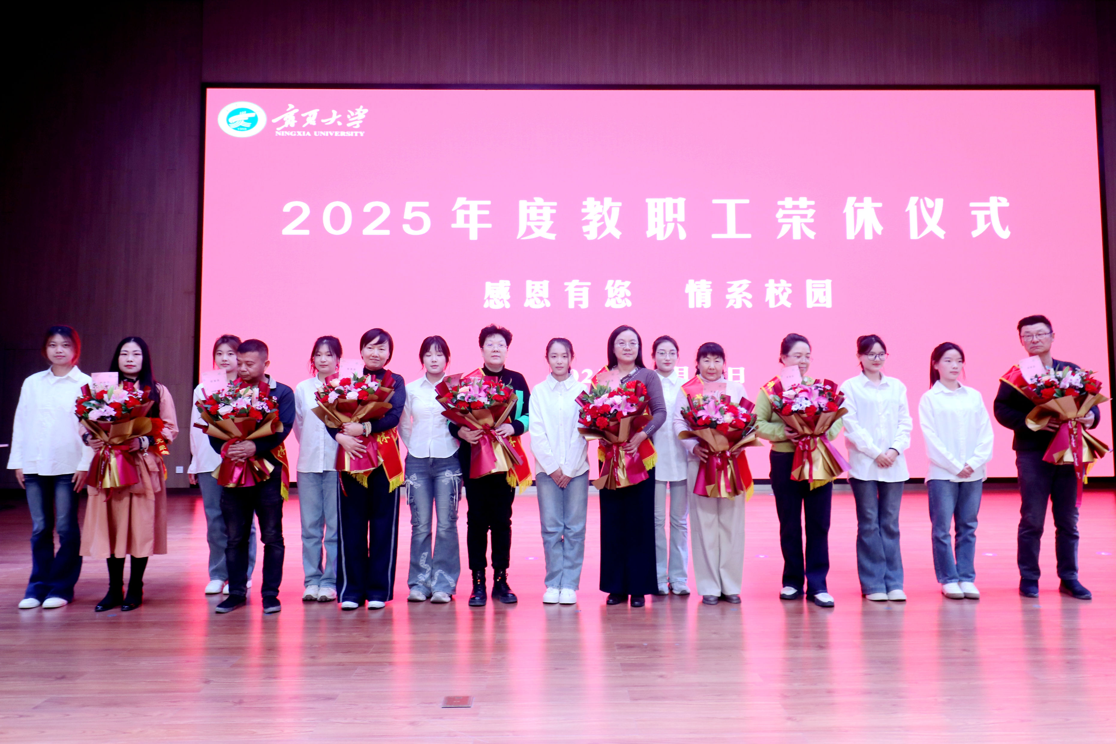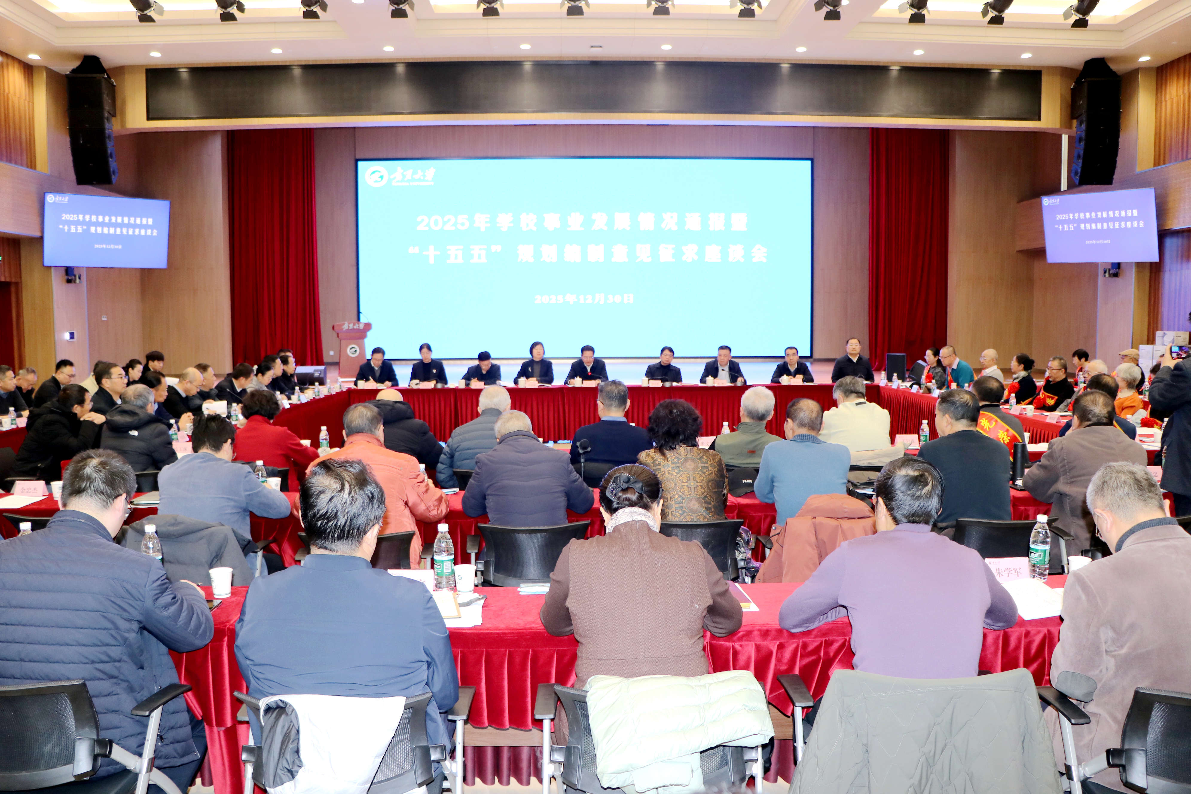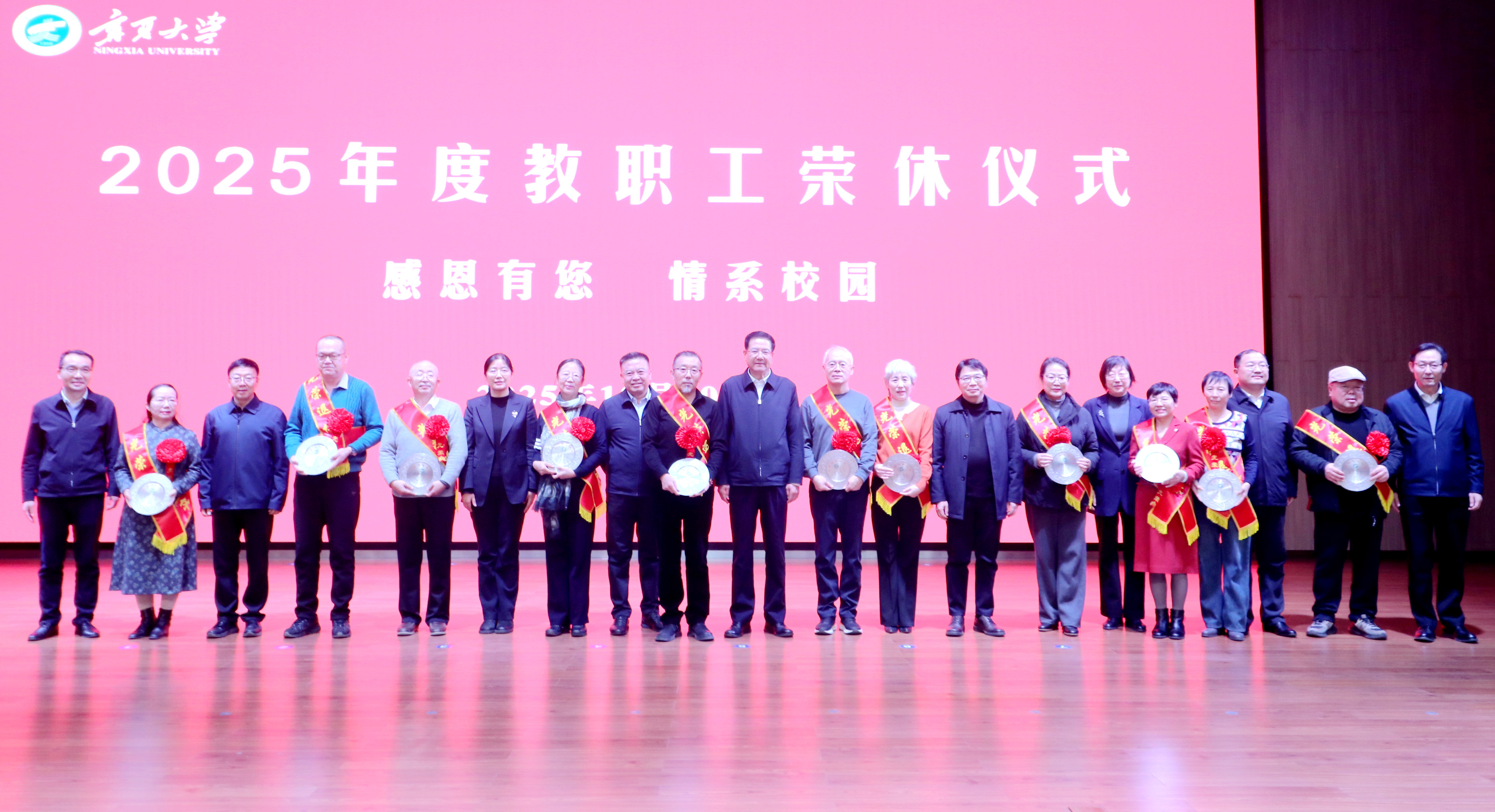 【宁夏大学新闻中心讯 张景/文、图】薪火相传守初心,砥砺奋进启新程。12月30日,我校在贺兰山校区笃行楼三楼报告厅举行2025年度教职工荣休仪式并召开学校事业发展情况通报暨“十五五”规划编制征求意见座谈会。全体校领导、党外代表人士、老同志代表、2025年度荣休教职工代表及相关部门负责人共100余人齐聚一堂,共忆执教岁月,共话学校发展,共绘未来蓝图。